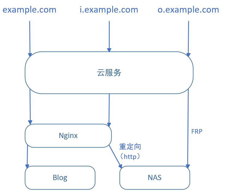 理论上是可以直接zerotier或者tailscale打洞,但是网速实在是感人。所以这次直接借用云服务较大的带宽做了frp反代。用了一个子域名作为区分,加上指定端口就可以反代到NAS主机上了。由于主站是基于1panel的openresty插件搭的,里面的nginx配置文件过于沟槽(大概是套了三层),导致stream模块没有办法在主站的conf下面运行,所以不得已只能放弃对于子域名的强制限制。